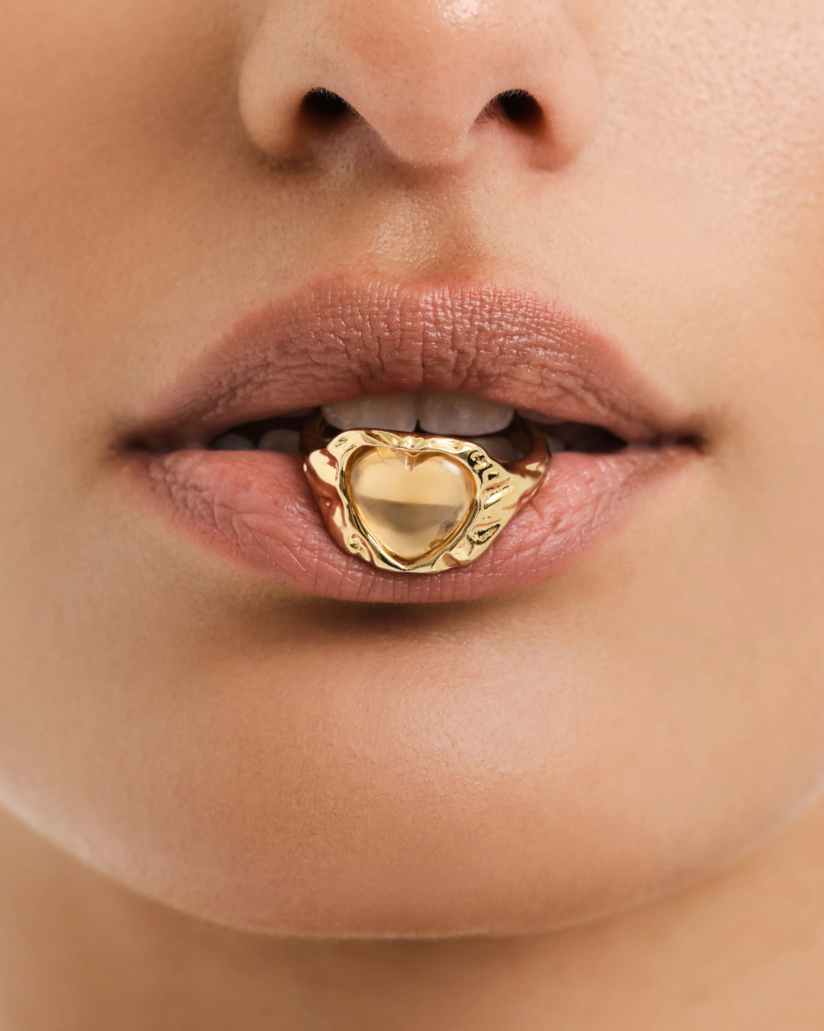 Der Caresse Ring besticht durch seine skulpturale Herzform und zieht garantiert alle Blicke auf sich. Mit seiner unregelmäßigen Oberfläche und organischen Form lässt sich dieses moderne Statement-Piece hervorragend mit anderem Herzschmuck kombinieren, um deinem Alltagslook eine expressive Note zu verleihen.
